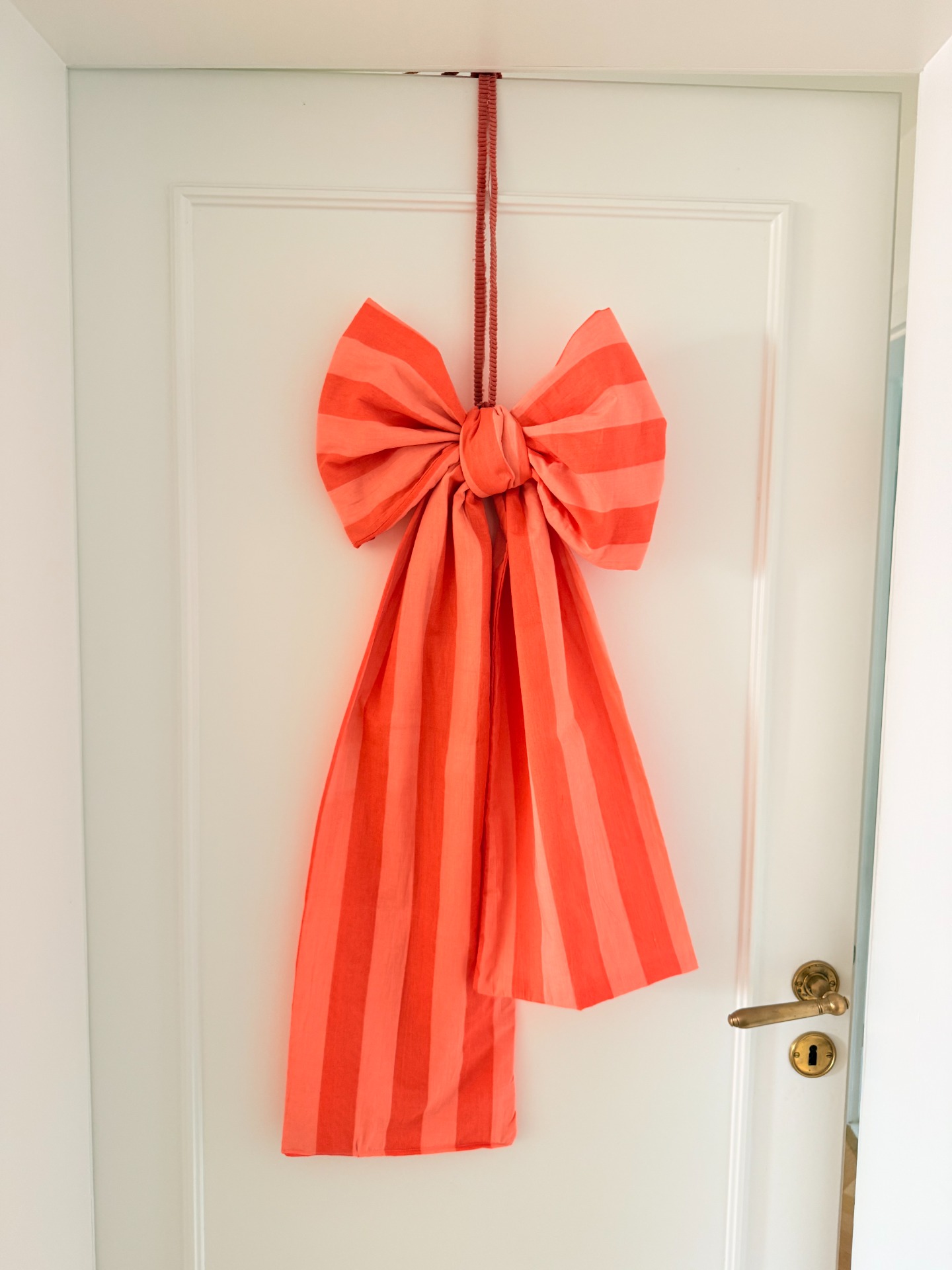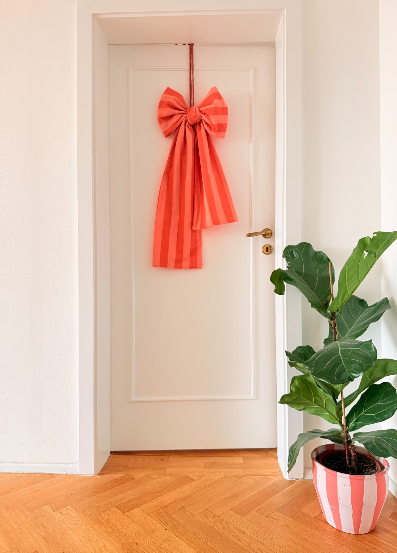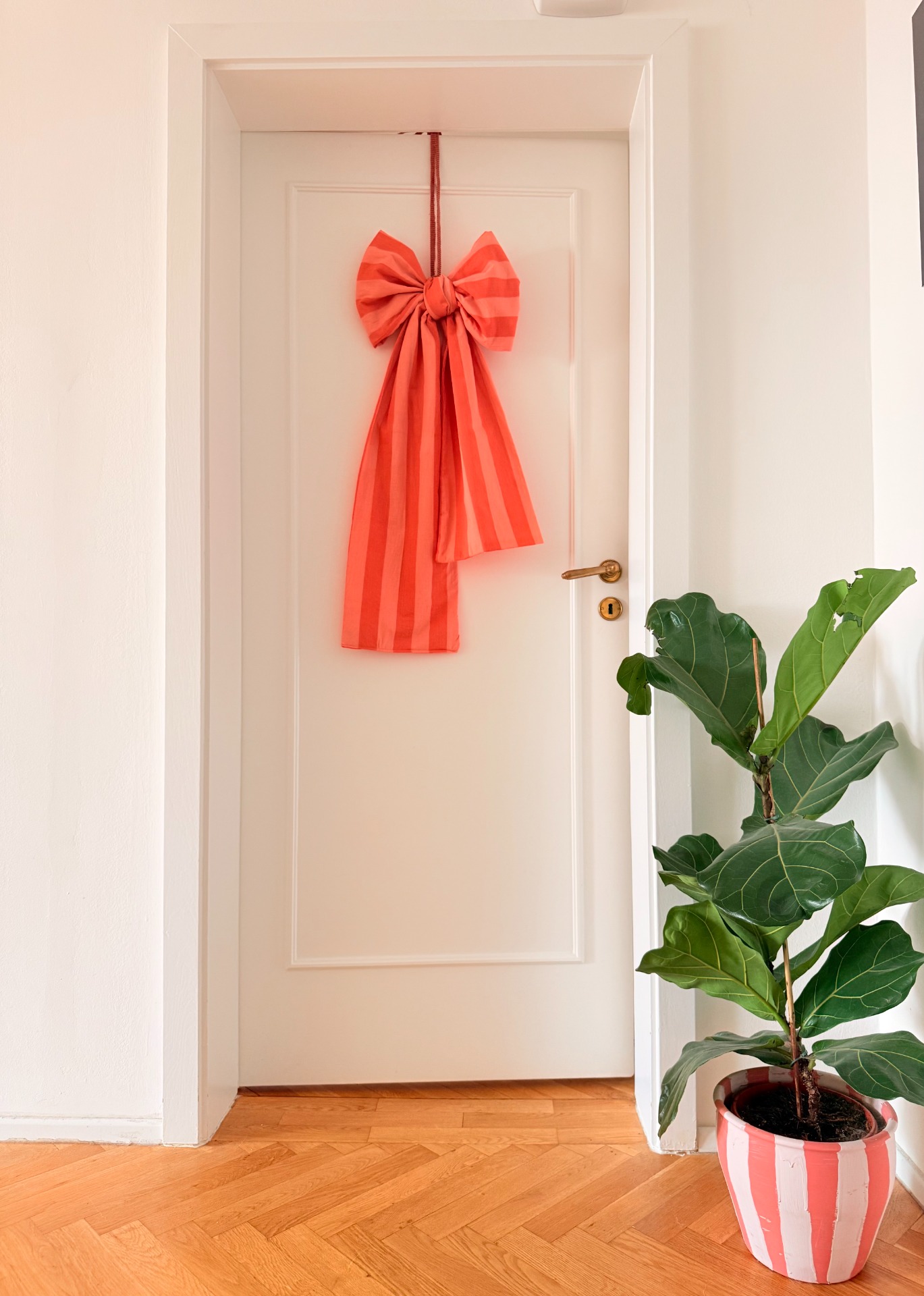 korálově-červená mašle, která dodá dveřím i interiéru výrazný, svěží akcent